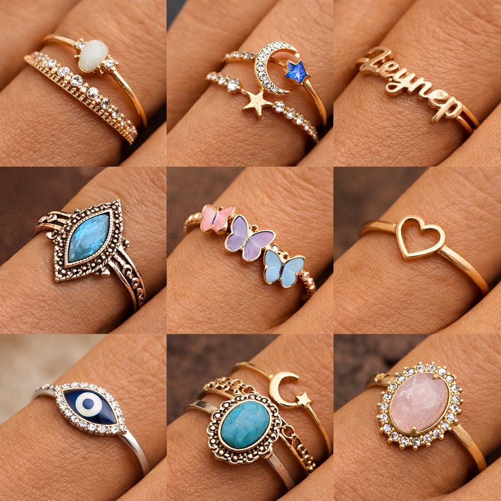 20 ayar altından üretilmiş, taş detaylı çoklu yüzük modeli. Gösterişli ve modern bir tasarıma sahiptir.
